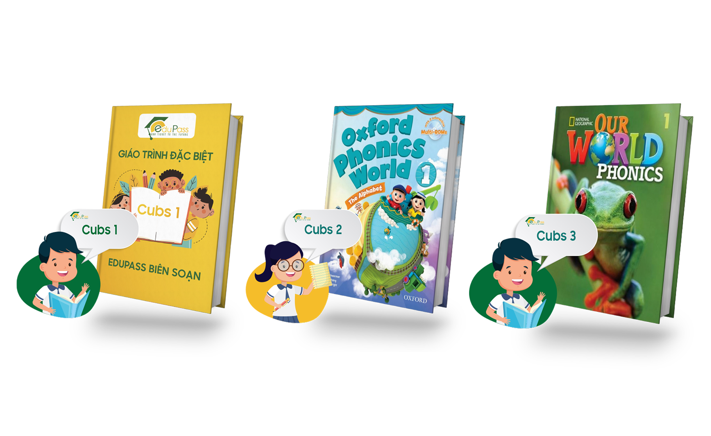 Giảng dạy kết hợp giữa giáo trình Oxford Phonics World (Đại học Oxford), Our World Phonics (National Geographics) và giáo trình biên soạn bởi EduPass.